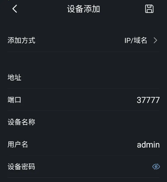设备可以使用IP地址或一般域名访问,输入IP地址或完整的域名地址就能进行设备添加。