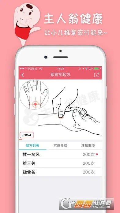 主人翁健康小儿推拿软件超实用!它能帮咱解决好多育儿难题。打开软件,各种儿童常见疾病的中医调理方法一目了然,像感冒发烧、拉肚子等情况,都有对应的推拿指导。还有三十多个小儿推拿基本操作手法的动画教学,简单易懂,咱在家就能轻松学。