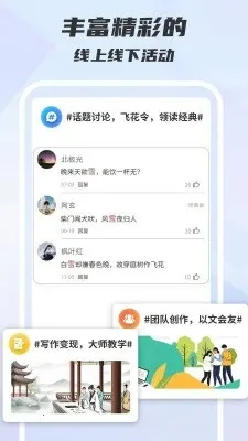 3. 灵感汇聚:软件汇聚写作相关热门讨论主题,为用户提供创作灵感来源,助您源源不断地产出优秀作品。