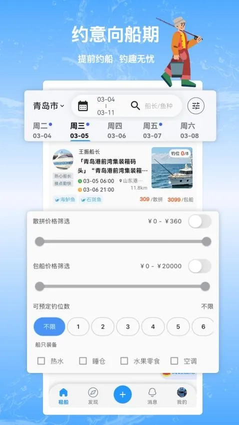 2. 预订方便快捷,用户能随时在线订船期,告别繁琐线下流程,出海计划更灵活。