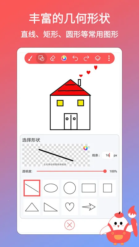软件里画笔样式超多,有基本画笔如铅笔、蜡笔等,还有形状画笔如矩形、圆形等,能自由调节画笔线条粗细、透明度和颜色。绘画时可插入图片、自定义文字,还能创建不同尺寸画布,直接打开图片编辑。有自动记录图画进度功能,下次上色更快。图画分类丰富,包含动物、花朵、风景等。在这里,无论是繁忙工作生活中想放松身心,还是提升绘画水平,它都能满足你,男女老少都能轻松使用,随时随地开启创意绘画之旅,快来试试吧!