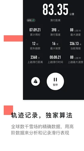 1. 智能算法记录:聪明的轨迹算法精准记录运动数据,自动计算滑雪趟数,能与其他雪友比拼,为滑雪季留珍贵档案。