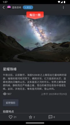 如果你是天文摄影爱好者,巡星客绝对是你的不二之选。它汇聚了海量高质量天文摄影作品,涵盖深空、星野、日月行星等多个主题,还有详细拍摄参数,能帮你学习参考。每日精选推送优质作品,激发创作灵感。这里专业社区互动超棒,你能发布作品接受点评,提升水平,还有器材交流、观测技巧分享等板块满足深度交流需求。官方定期举办摄影比赛,与知名品牌合作,有丰厚奖励和超前体验机会。支持多平台发布作品,还能展示创作团队。它内容专业、生态活跃,聚集核心天文摄影群体,资源丰富。从作品管理到互动交流,每个功能都围绕你的需求设计,解决创作和学习痛点,让你轻松享受天文摄影乐趣,在这个社区里尽情探索宇宙的奥秘。