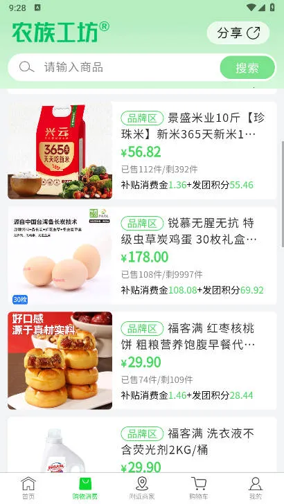 农族工坊是创新购物平台,融合传统零售与互联网技术,开创全新销售模式。有团购秒杀等活动,产品全且有补贴,数据清晰,还有直播。设购物专区,支持精准搜索、自动定位,提供交互式购物体验与实惠拼团模式。