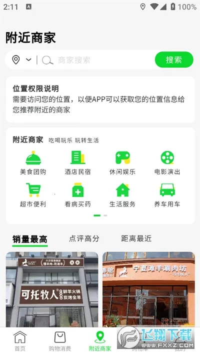 4. 支持关键字精准搜索,系统自动定位匹配周边商家。