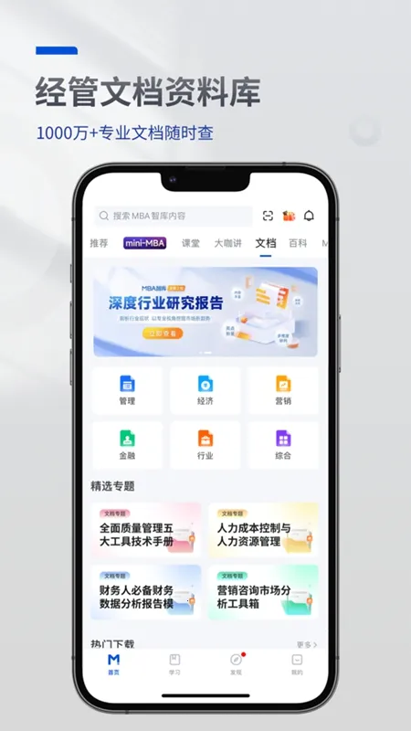 1. 资源丰富:MBA智库涵盖市场营销、财务管理等多个商业领域知识,收录各类管理理论、思维模型,还有大量案例研究、行业报告和专业文章,以及海量的经管百科、文档资料与优质课程等资源。