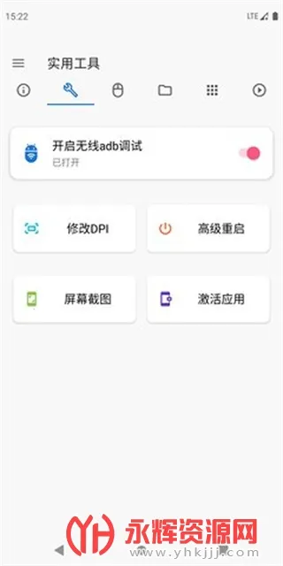 2. 能一键开启无线ADB功能,还可快速修改设备DPI并截屏。