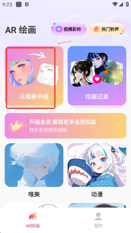 用户需要点击首页的“从相册中选”导入相册图片,然后运用AR技术进行临摹