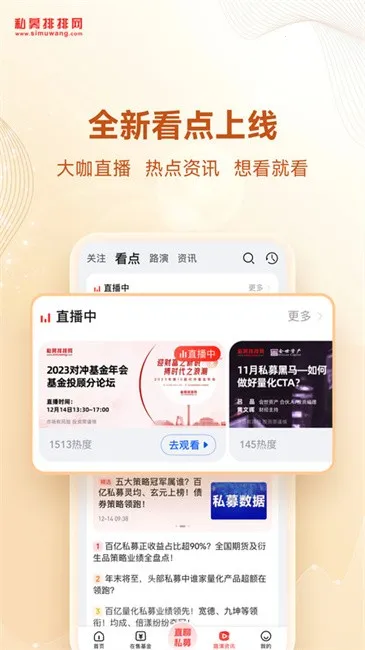 3. 路演直播精彩:每日邀请私募投资大咖现场直播,全面剖析投资策略,让投资者能实时了解私募走势,把握投资方向。