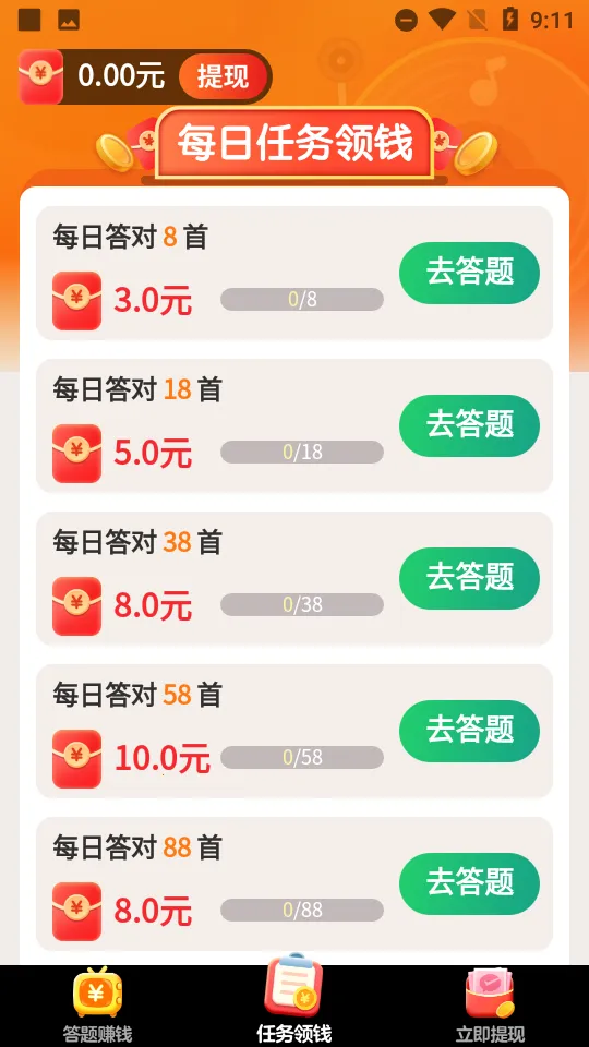 想通过玩游戏赚钱还能微信收款?金曲刷刷这款软件就能满足你!它是个超棒的视频听歌答题应用。这里有海量丰富的歌曲资源,你可以边看精彩视频,边听动听歌曲,还能随时参与互动答题。每看一条视频都能获得金币奖励,这些金币能直接兑换现金,轻松赚钱到微信。而且还有开宝箱、每日抽奖等活动,让你在碎片时间里就能轻松赚取零花钱。新用户下载直接送现金红包奖励哦!软件里的金曲不断,各种金曲视频集锦,简单又有趣。通过互动答题,既能享受乐趣,又能收获满满。不管是经典老歌、大众嗨曲、网络情歌还是国际流行音乐,都能在这里找到,带你回忆不同的美好时光。快来下载金曲刷刷,开启你的赚钱娱乐之旅吧!