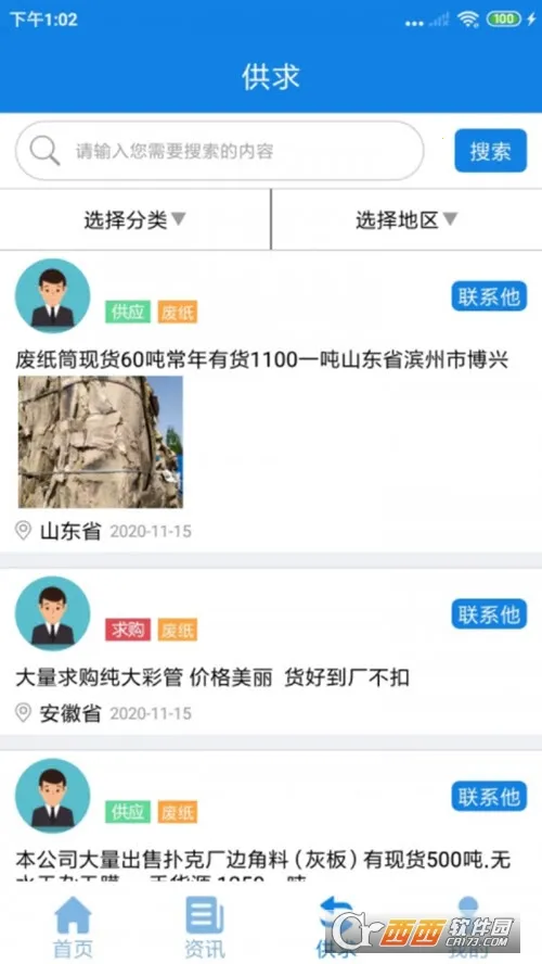 2. 设有贴心的供求信息筛选栏,供求中心为用户设置了选择分类以及选择地区筛选栏目。