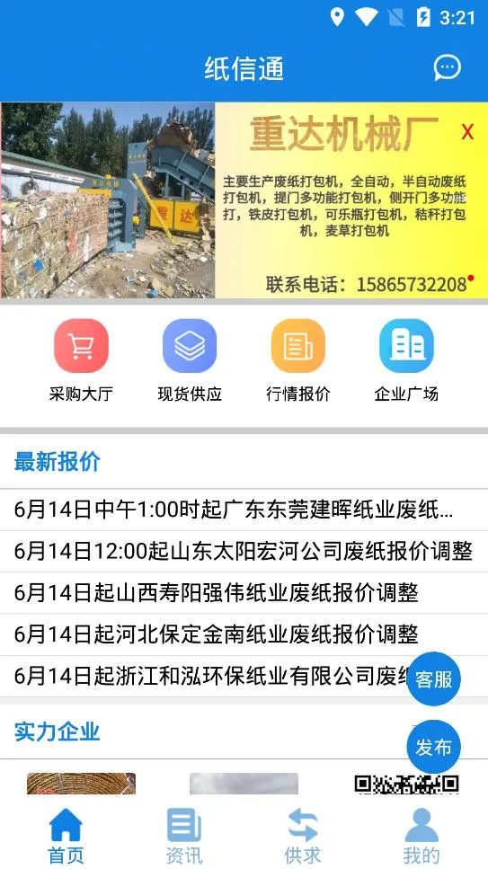 纸信通是一款专为废纸回收市场打造的APP,连接废品收购者与需求者。它简化交易流程,提供实时报价、全面货源搜索等功能,涵盖12类废纸,还有多种特色亮点,让废纸买卖更简单便捷。