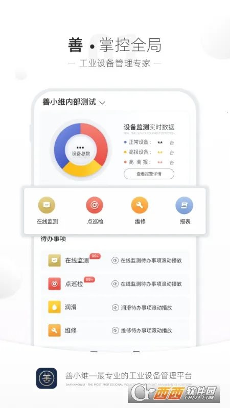 它专为工业设备管理打造,实现软件平台化架构,提供便捷数据来源与展示。有设备状态监测功能,精准监控设备工作状态,实时预警,避免故障停机。点巡检功能科学化,还有到期未检风险提示。维修保养方面能规范化数据,关联施工安全作业事项。综合报表可多角度分析设备、人员巡检维修等数据,提供决策参考。多项实用工具让工业维保更轻松。而且它与PC端功能同步,真正实现移动办公。不管是查看设备数据趋势图、频谱图,还是接收数据异常提醒,都很方便。有了善小维,设备管理变得简单又高效,能很好地满足大家对设备管理的需求,属于非常实用且功能强大的设备管理软件档次。