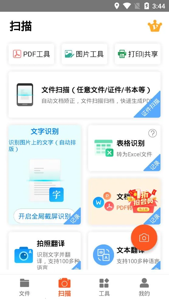 PDF扫描王安卓版是一款功能强大的扫描软件,支持多种语言识别,能快速扫描文件、图片等提取文字,具备智能识别、扫描翻译、自动排版等功能,还集成多种PDF和图片工具,满足多样扫描需求。