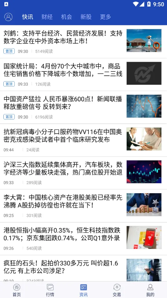 3、资讯内容丰富:提供强大的资讯内容,囊括财经热点新闻、行业动态、个股机会、新股资讯、数据掘金、港股美股、基金理财等全面资讯内容,助您更好理解市场行情。