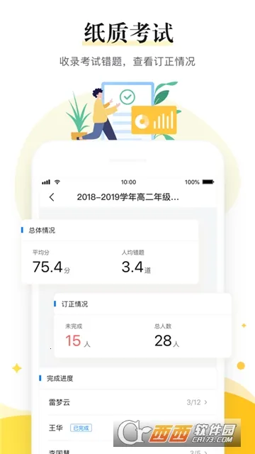 1. 试卷报告精准:自动解析作答数据,定位共性错题与高频失分点,生成可视化报告,呈现知识点薄弱环节。