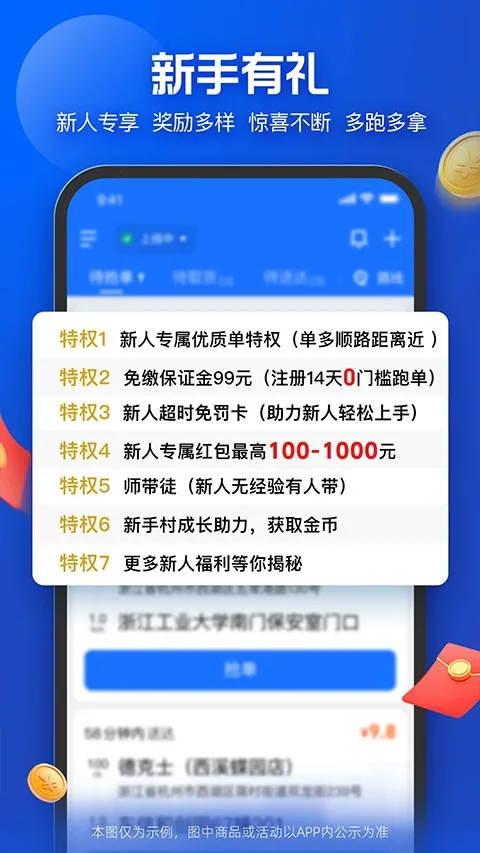 海量订单资源:依托饿了么平台,拥有海量订单,让你不愁没单接,持续获得配送机会。
