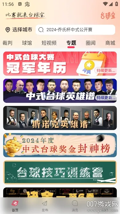 台球宝是台球爱好者聚集地,有一站式服务。能看赛事直播、查活动报名,找附近球馆预约,买台球用品,看短视频学技巧。还有赛事、球馆、短视频、商城等功能,特色鲜明,使用方便。