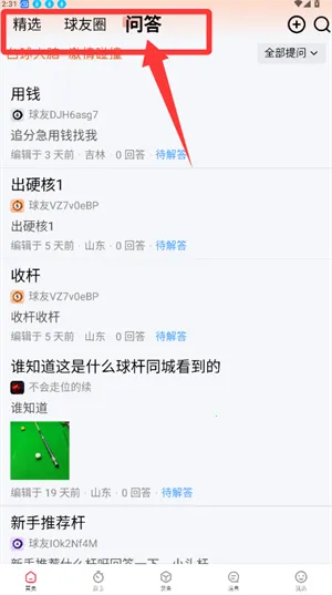 2、进入主界面,在顶部标签栏选择问答板块浏览。
