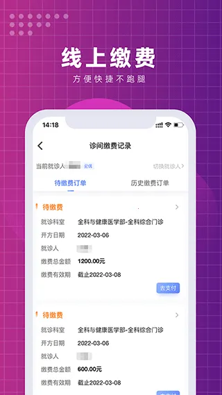2. 医保移动支付:诊疗订单支持医保移动支付,住院患者还能线上缴纳补缴预交金,门诊缴费无需排队,方便快捷。