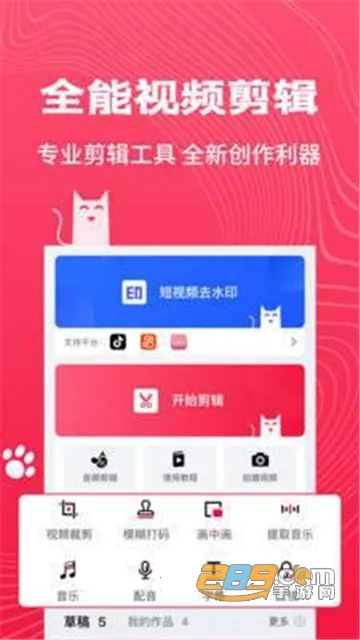 剪辑猫视频去水印是长沙艾珀科技研发的视频剪辑工具,支持剪辑、倒放等功能,有丰富滤镜、贴纸。能精准剪辑、去水印,添加字幕、封面,一键分享。手机相册视频可上传,操作简单,还有活跃视频社区 。