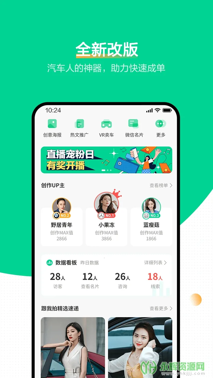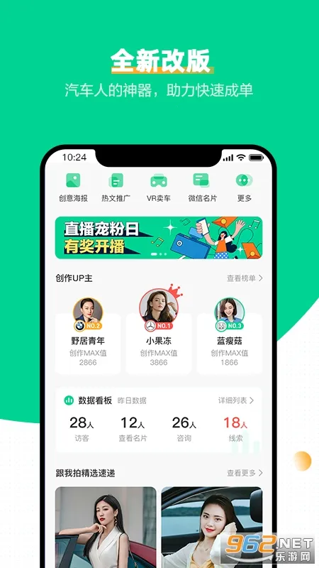 这款软件的便利性体现在多方面。海量素材一键分享,通过裂变传播帮您吸引客户。能快速制作创意海报并一键转发,掌握热点营销。分享素材时自带名片,不错过任何潜在客户。在线聊天自动建档,消息提醒及时,高效管理客户。各种车型展示让客户直观了解车型信息,还能创建汽车简历方便客户联系。有VR卖车模块,可采用VR形式展示车辆。总之,口袋蜜蜂pro能全方位助力汽车销售,满足从业者营销需求,提升销售业绩。