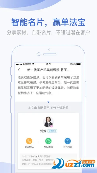 智能名片:分享素材时自带名片,不错过任何潜在客户。