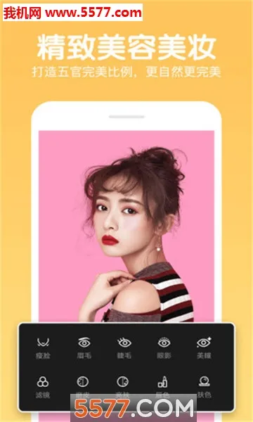 2. 涵盖大眼睛、口红上色、瘦脸、触屏整形等功能,精细化雕琢面部细节,让照片人物更加完美。