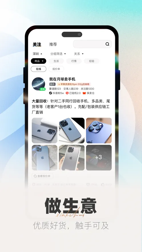 2. 优质货源:提供稳定可靠二手数码产品来源,满足下游客户高品质需求。