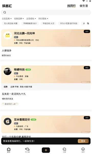 侠客汇是一款专注于二手B2B社交贸易的移动应用。它能帮上游卖家高效散货,快速消化库存,缩短商品流转时间;为下游买家提供稳定可靠的二手数码产品优质货源,满足高品质需求。