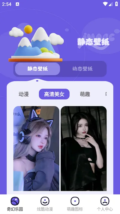 3. 便捷的壁纸设置:操作便捷,支持一键快速设置壁纸。进入软件就能选择符合爱好的壁纸风格,还能根据分类挑选,如萌趣动漫等多种分类,甚至有动态壁纸可选,轻松将壁纸设置成功。