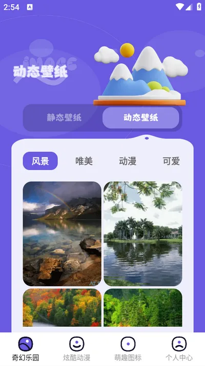 1. 壁纸分类全:类型齐全风格多样,涵盖动漫、卡通、简约、风景、治愈等,随心挑选更换。