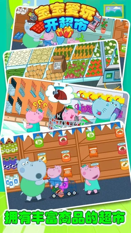 宝宝爱玩开超市这类游戏对孩子来说很不错哦!它能让孩子在游戏中体验开超市的乐趣。孩子可以通过游戏认识各种物品,像水果、衣服、蔬菜、鞋子、园艺工具等等。还能接触到收银找零,对金钱换算有一定认知呢。游戏画风卡通可爱,很吸引小朋友。玩法也有趣,妈妈列出购物清单,孩子推着手推车在超市找清单上的物品,不能买额外东西,集齐 5 颗星妈妈会开心。还能帮孩子养成不乱买东西的好习惯,成为妈妈购物小帮手。在游戏时就能学习知识,有彩色图片,超市里有许多不同产品。总之,它是一款能让孩子边玩边学,充满趣味的教育游戏,对孩子成长很有帮助,家长们可以放心让孩子玩。
