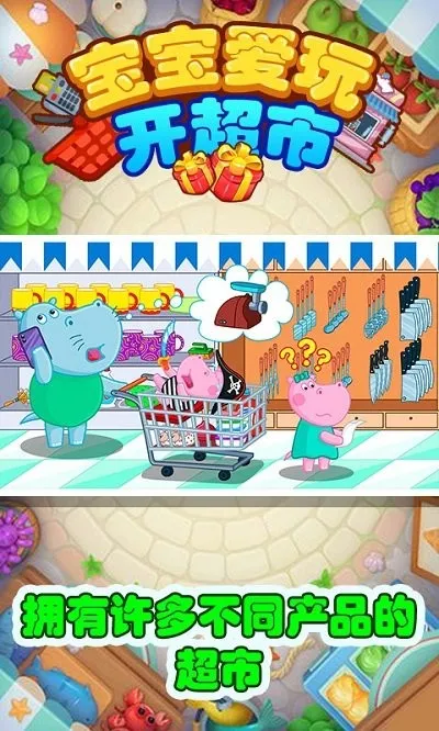 宝宝爱玩开超市最新手机版是一款为孩子提供教育元素的趣味游戏。能让孩子体验开超市,认识各类物品,接触收银找零,养成好习惯。游戏画风卡通可爱,含多种产品,玩法有趣,助孩子在玩耍中学习知识。