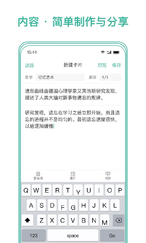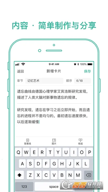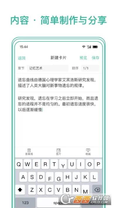 3. 知识分享平台:支持类似Markdown的文字和图片混合输入,不仅可编辑知识卡片,还能与朋友共享知识,探索他人提炼的信息,和世界一起进步。
