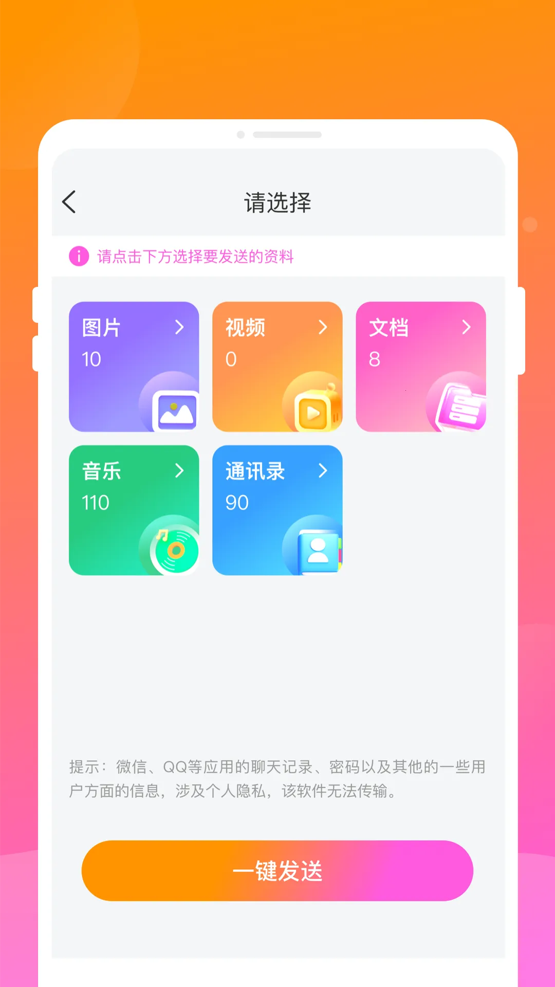 4. 隐私安全有保障:数据仅在两台手机间直接传输,避免第三方介入,采用点对点传输模式,不存储于任何云端或第三方服务器,有效保护用户隐私。