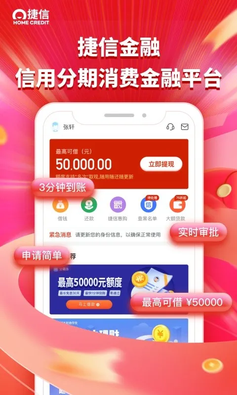 捷信金融是正规信用分期消费金融平台,提供高额度现金贷款,兼具购物功能。由持牌机构运营,安全可靠,流程便捷,审批快到账速,还有专属折扣商城,商品正品保障,满足多元需求。