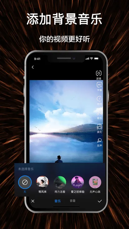 4. 云端音乐素材库集成千首版权背景音乐与音效,智能推荐适配乐曲,支持卡点剪辑模板。