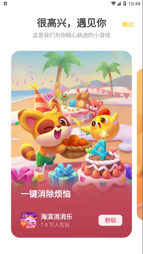 游戏质量高,平台上的游戏都经过精心挑选,确保游戏的质量和用户体验。运行流畅不卡顿,软件加载速度快且完全不占内存,让你享受优质的游戏过程。