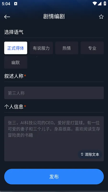 Ai智能对话是一款集AI互动对话与文本创作为一体的软件。支持预设角色、自由聊天,能模拟多种环境。具备文案创作、脚本撰写等功能,可自定义AI,一键生成内容,降低创作门槛,满足多样需求。