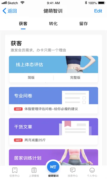 2. **丰富获客话术支持**:提供大量实用话术,教练能学习并用于推荐课程,吸引学员充值会员,轻松开单。凭借话术提升吸引力,增加开单机会。