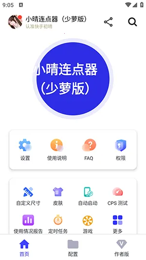 小晴连点器是用户自制的实用连点器软件,无需root权限,兼容性强。有单点、多点等模式,能自动执行重复点击,节省时间精力,操作简单,界面简洁,还可自定义设置,保障数据安全,不断优化更新。