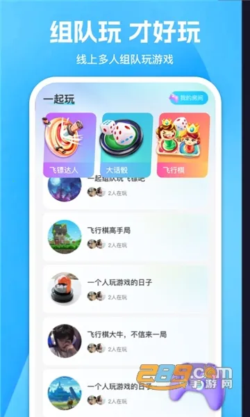 如果你喜欢玩游戏,那这款游玩app绝对值得拥有!它就像一个超棒的游戏乐园,里面有海量小游戏,像棋类游戏、大话骰、飞镖达人等应有尽有,能满足不同玩家需求。这里无需下载就能在线畅玩各种精彩游戏,还能轻松组队,享受更好的游戏体验。它会根据你的游戏记录和兴趣偏好,给你推荐适合的游戏和队友,更准确地匹配玩家和游戏,提供快速又针对性的组队服务,让你认识和结交更多志同道合的朋友,扩大游戏圈子。不管是想和好友一起玩,还是找新的游戏体验,它都能满足。而且它不断更新,新增更多小游戏,细节体验也优化得超棒,游戏过程超流畅。还有热门游戏资讯、酷炫攻略、游戏评测等,让你对游戏了如指掌。快来下载,一起在游戏世界尽情玩耍吧!