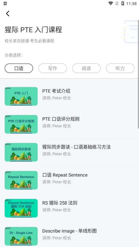 2、海量课程实时更新:软件每天都会实时更新海量的专业课程,从入门到精通全面讲解,无论是雅思或托福转考PTE的考生,还是PTE学术考生,都能从中受益。