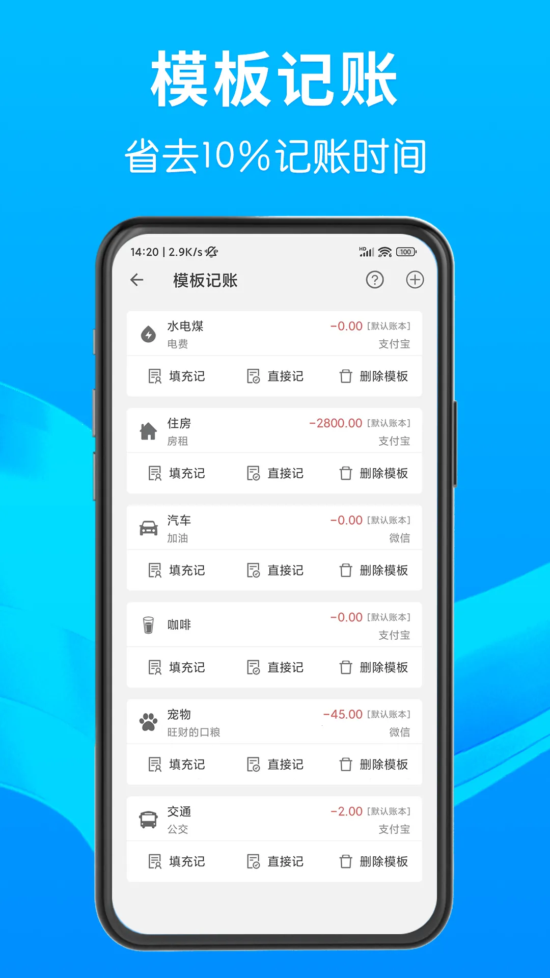 节省时间:支持自动记账、周期记账和模板记账,能帮您省去不少记账时间,让记账更高效。