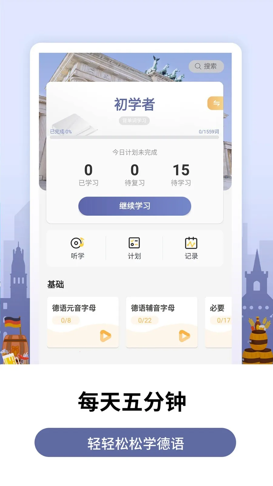 1. 零基础用户能快速入门,体验闯关式学习方式,轻松开启德语学习之旅。