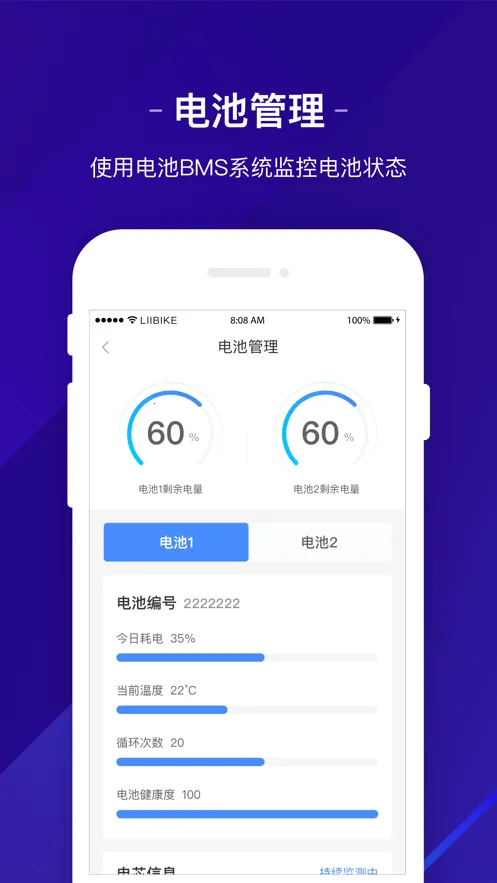 2、电池状态全监控:可记录车辆电池电量,计算剩余使用时间及行驶距离,全方位监控电池状态。