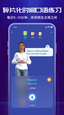 4、随时随地学习:用户能随时随地进行听说读写学习,借助全方位交互方式提升英语口语能力,不受时间地点限制。