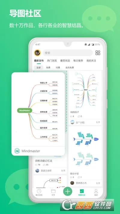 2. 丰富模板社区:内置思维导图社区,涵盖教育、职场、自我提升等各大领域的精华知识,有10w+导图作品。