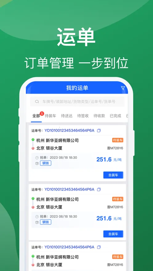司机通过它能实时接收下发订单并处理,比如确认订单、查看详情等。软件可自动记录货运过程,防止恶意损坏卡车和货物;能检测货物重量和数量信息,减少货物损坏和丢失;还能提高行业车货匹配效率,方便运输订单管理。支持一键匹配,全自动快速匹配车货。有了它,司机找货更容易,能轻松接单、快速运输,实时监控运输状况,及时解决问题,避免损失,还能便捷管理运单,与货主沟通更方便,提升运输效率,让货运之路更顺畅。